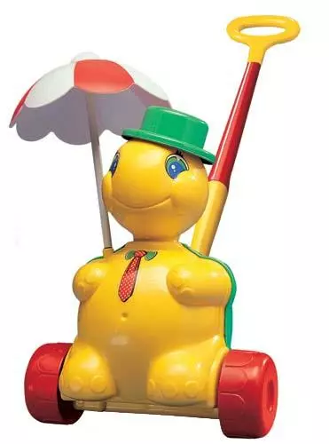 3637 Черепашка-каталка Тортила "Молто" Забавная черепашка Тортила с зонтиком сделаяе прогулку малішей еще более интересной и увлекательной. Прекрасная детская игрушка для детей от 1 года. При помощи палочки, ребенок будет толкать черепашку, а она будет ехать
